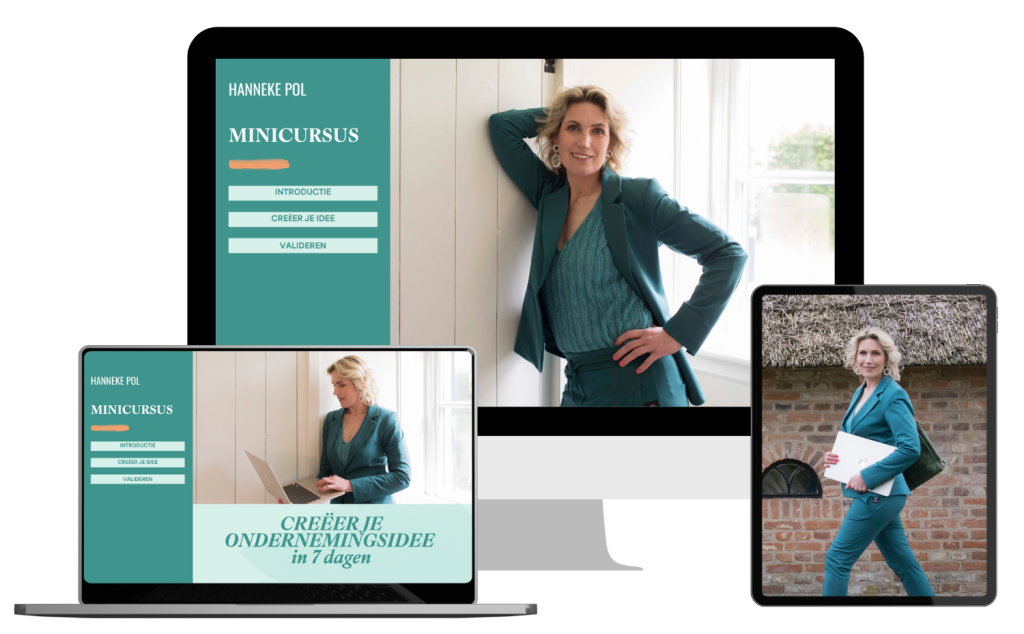 Hanneke heeft mij hierbij inhoudelijk veel inzichten gegeven en mij geholpen om mijn hoofd vol ideeën te structureren en ordenen naar een goed, overzichtelijk en uitvoerbaar plan. Ik heb nu een compleet uitgewerkt pilot product staan en heb mijn eerste gesprekken gehad met mijn doelgroep.